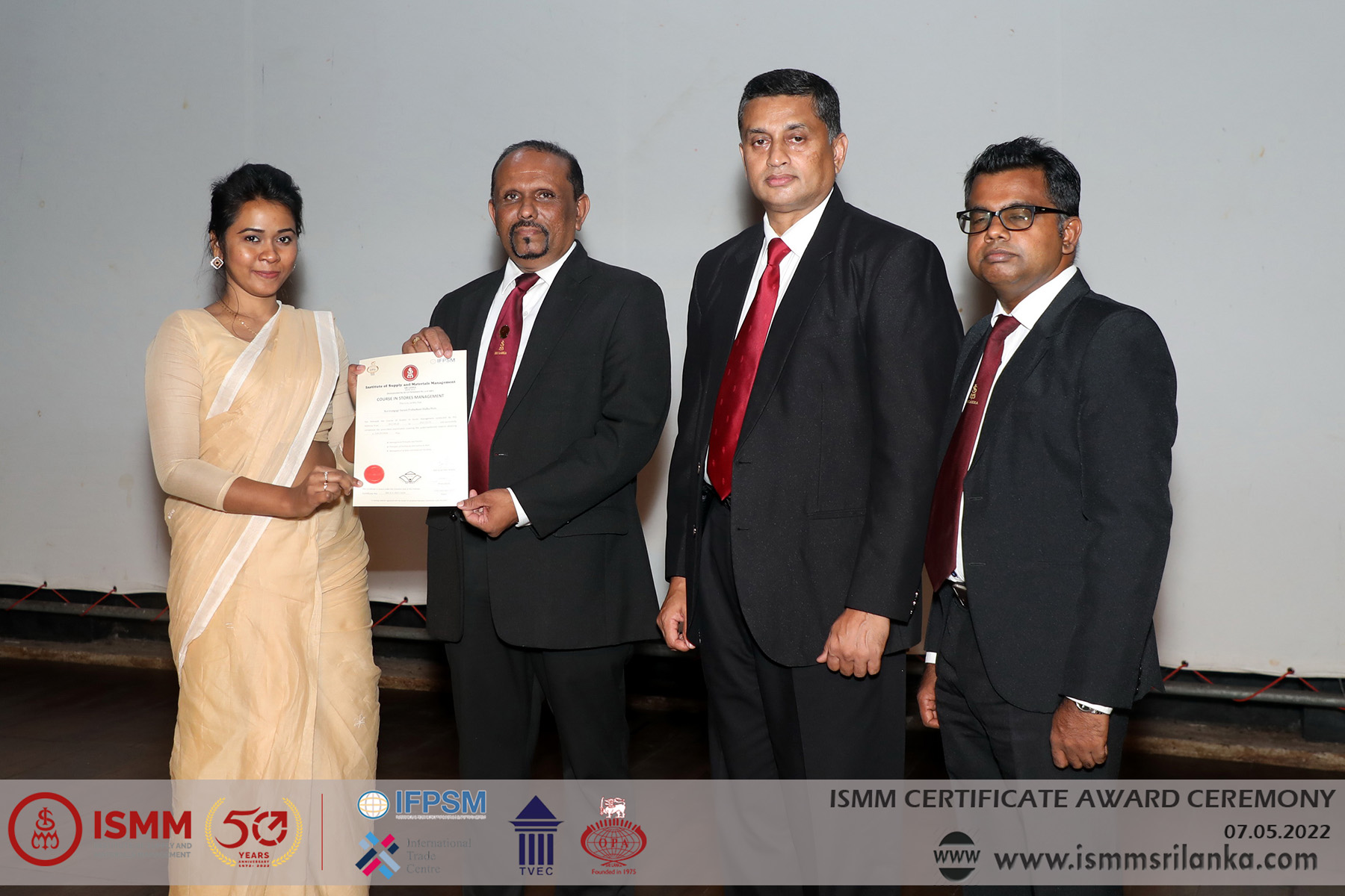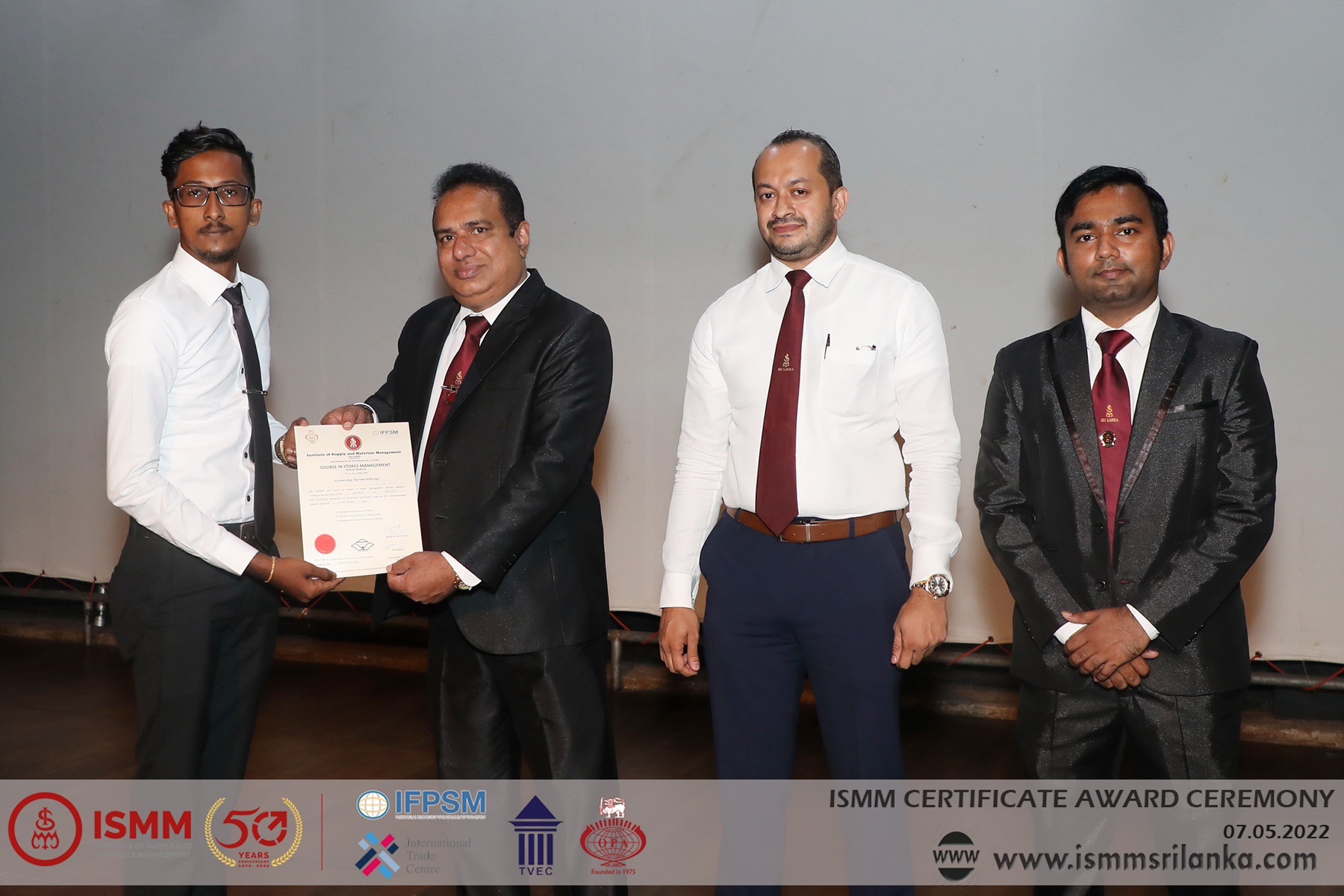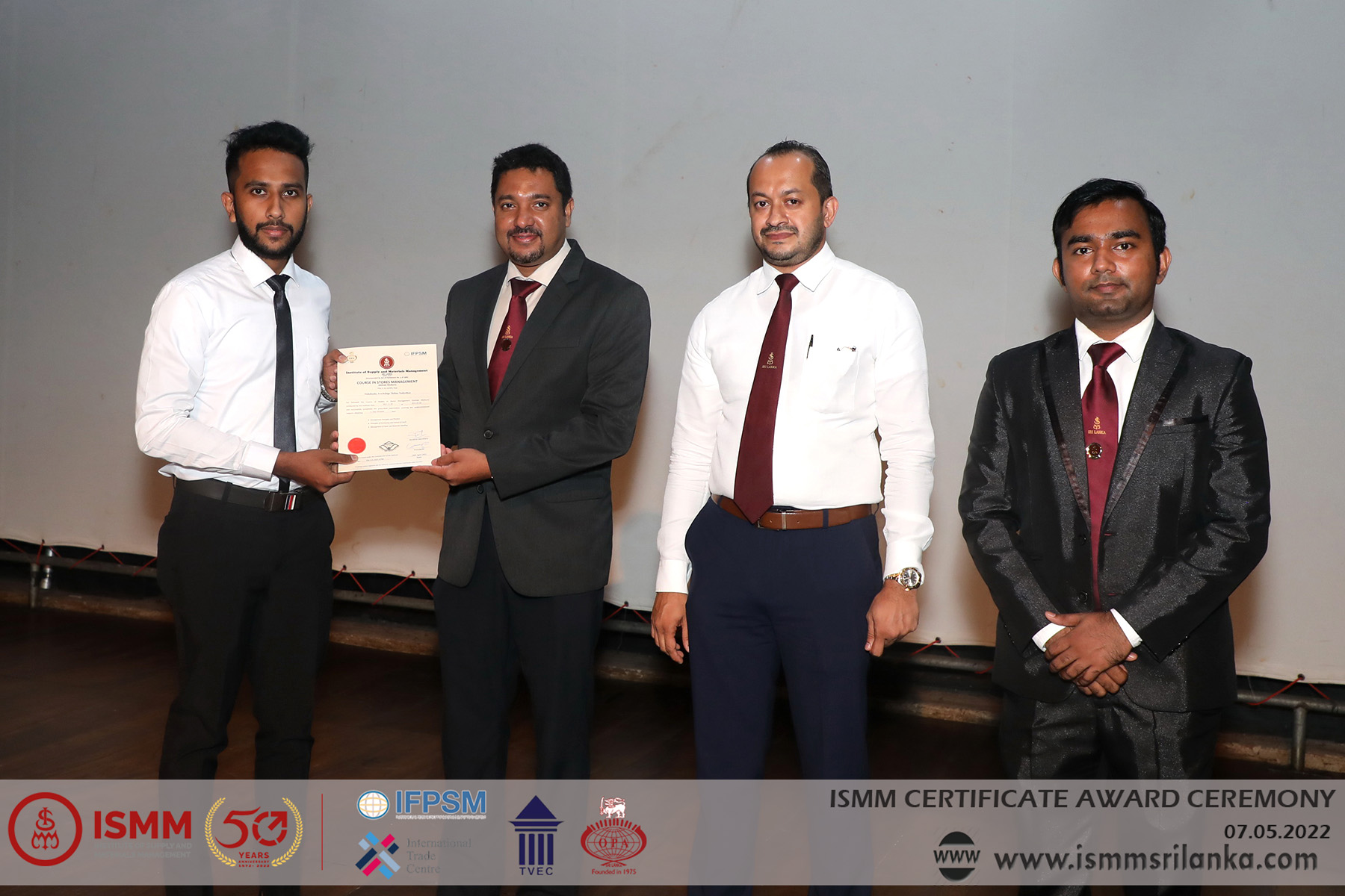 The Institute of Supply and Materials Management the first Government Recognized Institute for Supply Chain Management Education which was established in 1972 celebrates its 50th Anniversary in October 2022 conducted its 2nd Certificate Awards Ceremony for the year 2022. Certificates were awarded to more than 250 students who successfully completed the following courses last year.