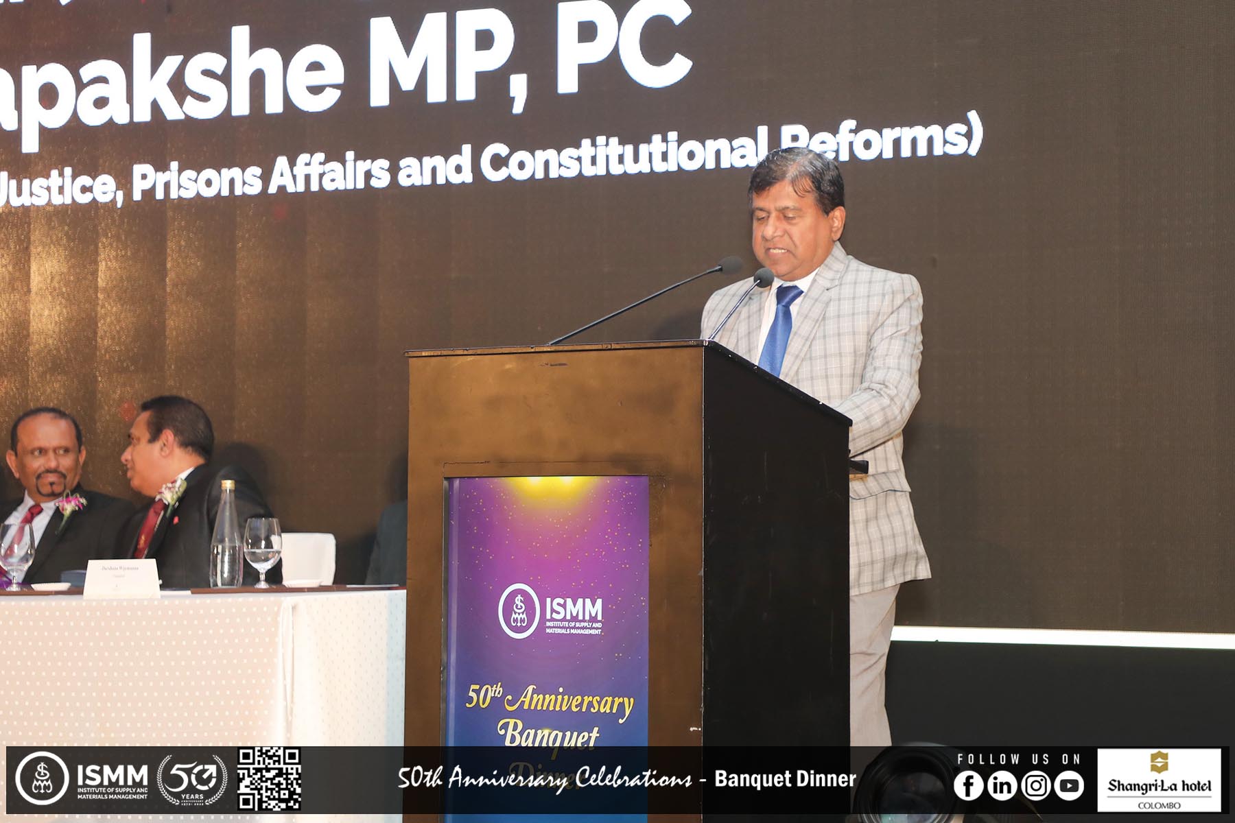 ISMM celebrated its 50th Anniversary on 24th October 2022 at the Shangri-La Colombo with a Grand Banquet Dinner. The Chief Guest was Hon. (Dr). Wijeyadasa Rajapakshe MP PC, Minister of Justice, Prison Affairs and Constitutional Reforms.