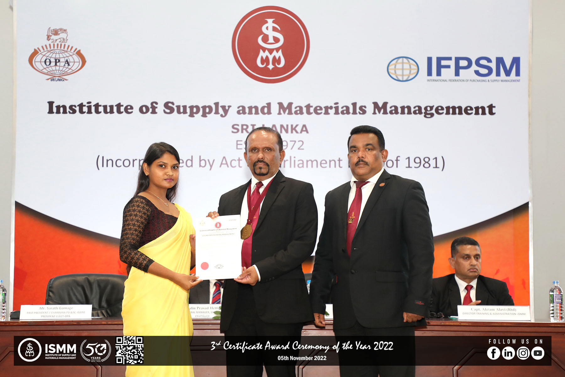 The Institute of Supply and Materials Management, the National body for Supply Chain Management conducted its 1st Certificate Awards Ceremony for the year 2023 in a very successful and colorful manner on 17th June 2023. Certificates were awarded to more than 350 students who completed Management and Certificate Level courses at ISMM.