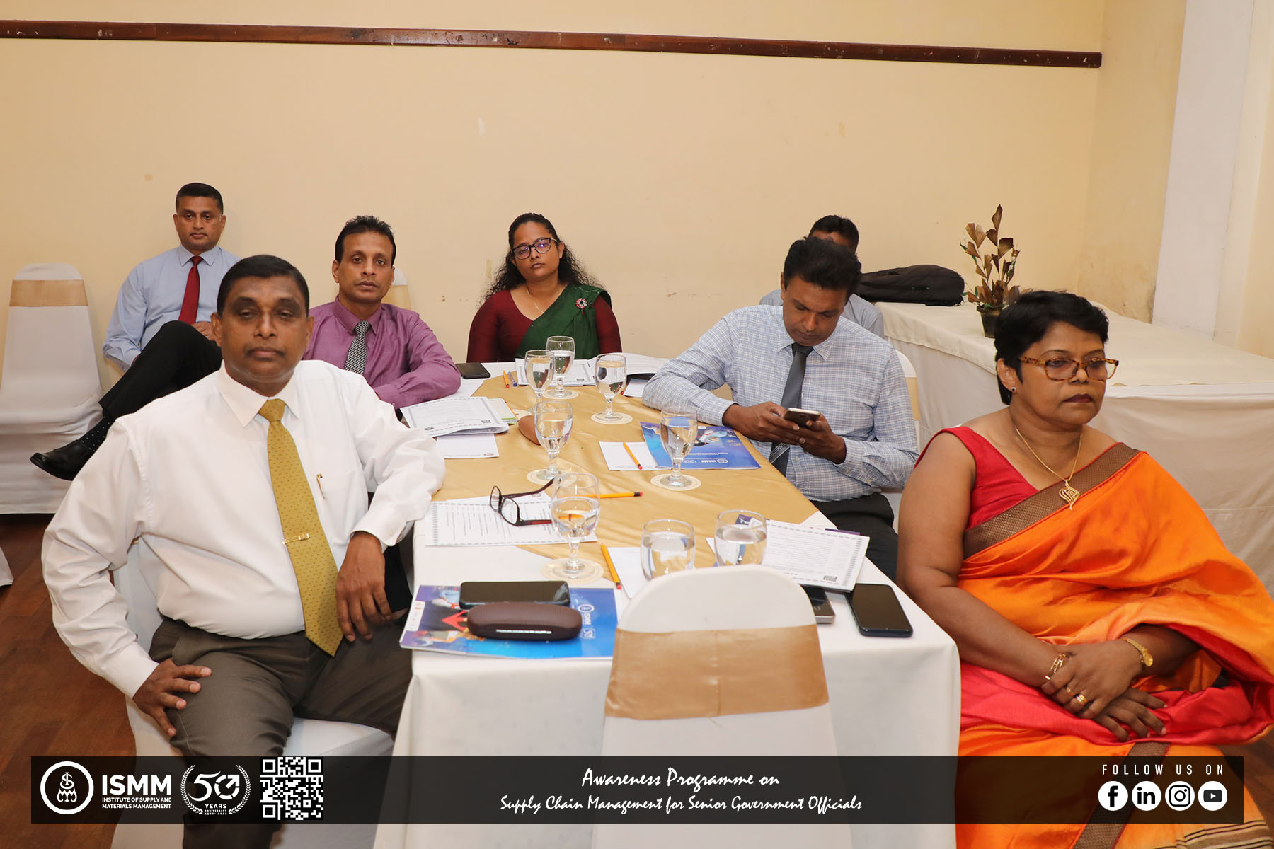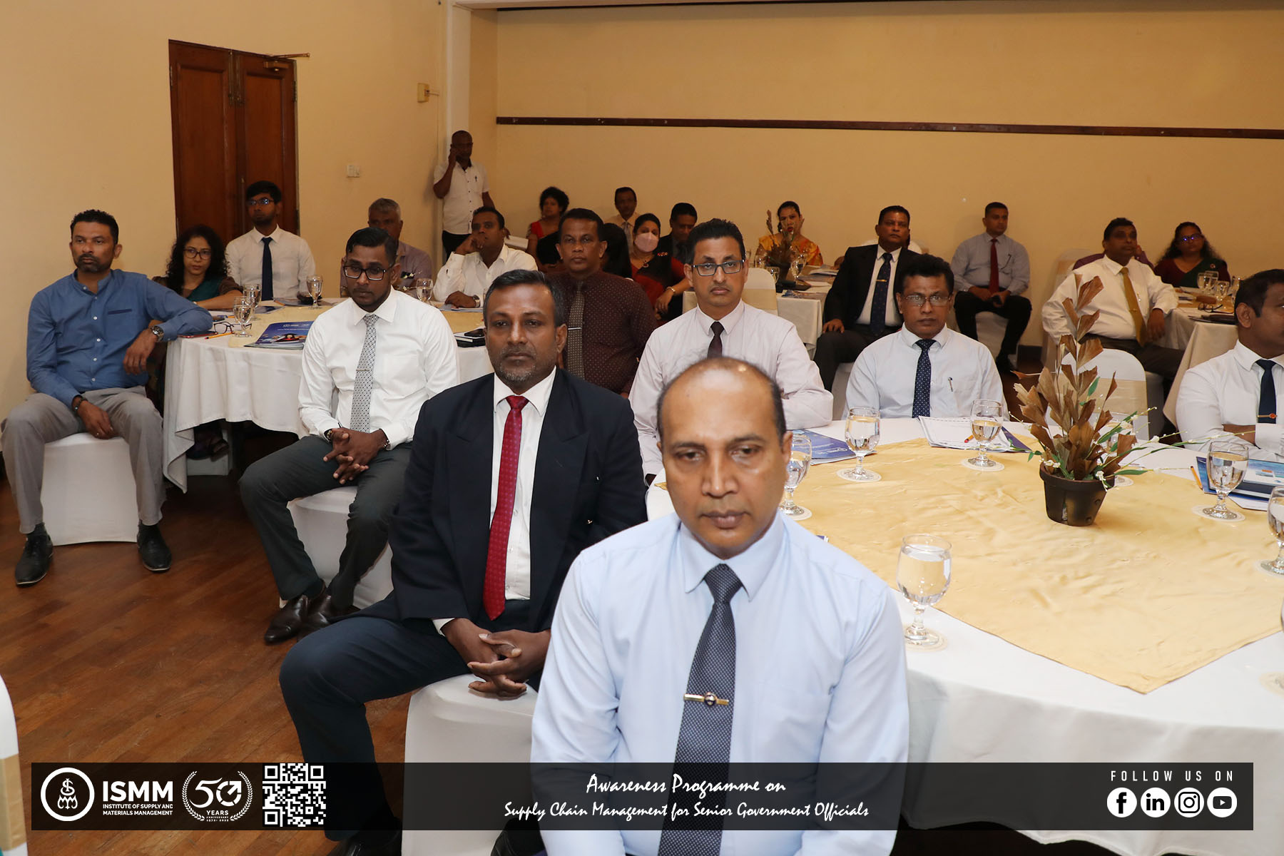 Institute of Supply and Materials Management (ISMM) as the National Professional Institute for Supply Chain Management Education. in collaboration with the Industrial Development Board (IDB) conducted an Awareness Programme on Supply Chain Management to Senior Government Officials on 28th July 2023 at the Grand Oriental Hotel Colombo. The resource persons were Mr. I. G. Perera, Past President of ISMM and Dr. (Eng.) Sanath Divakara, General Secretary of ISMM.