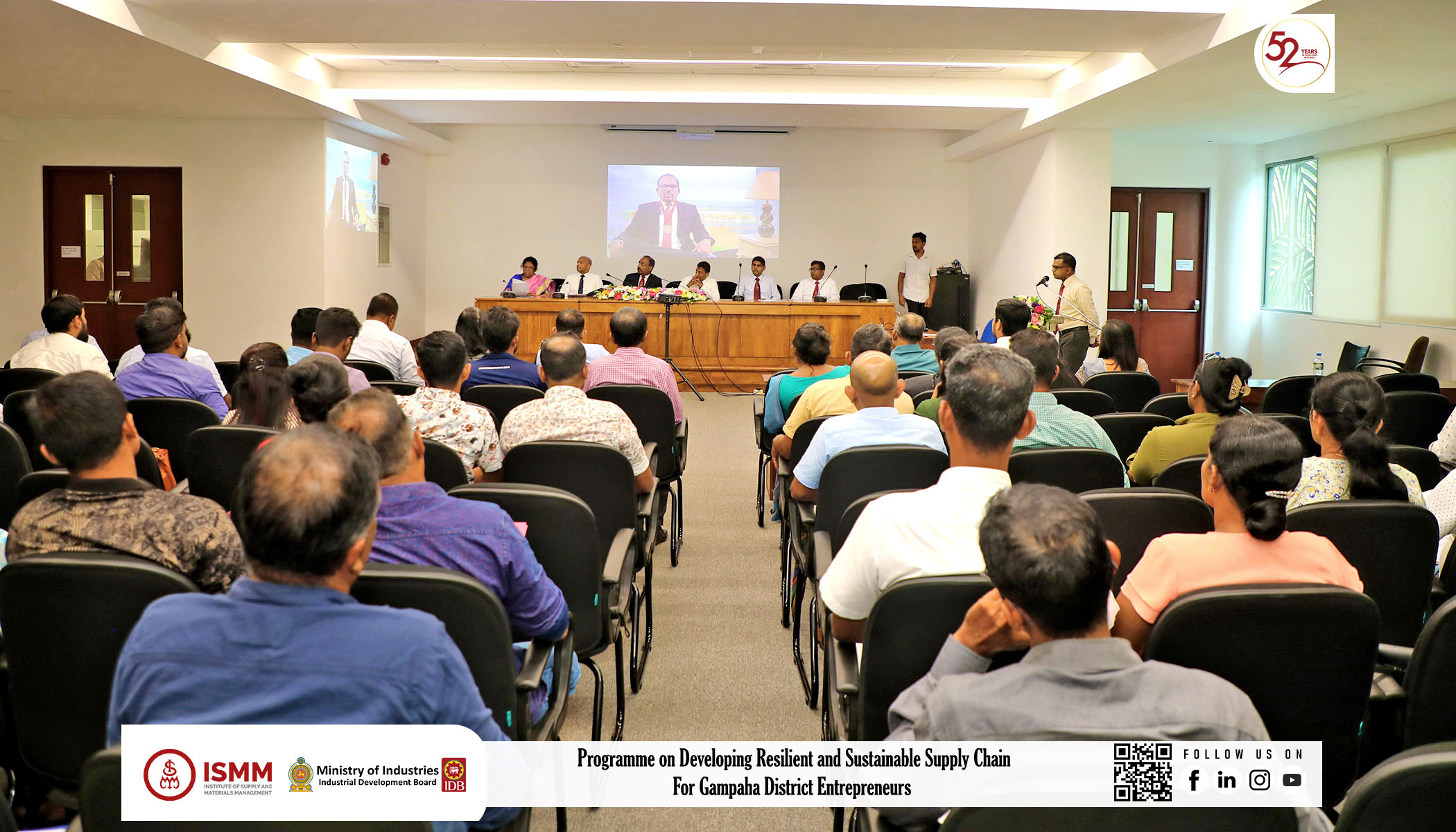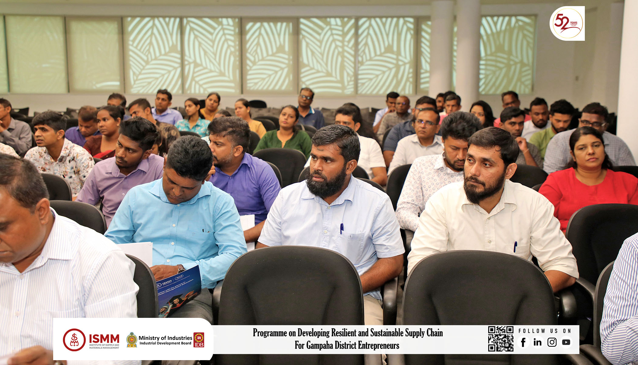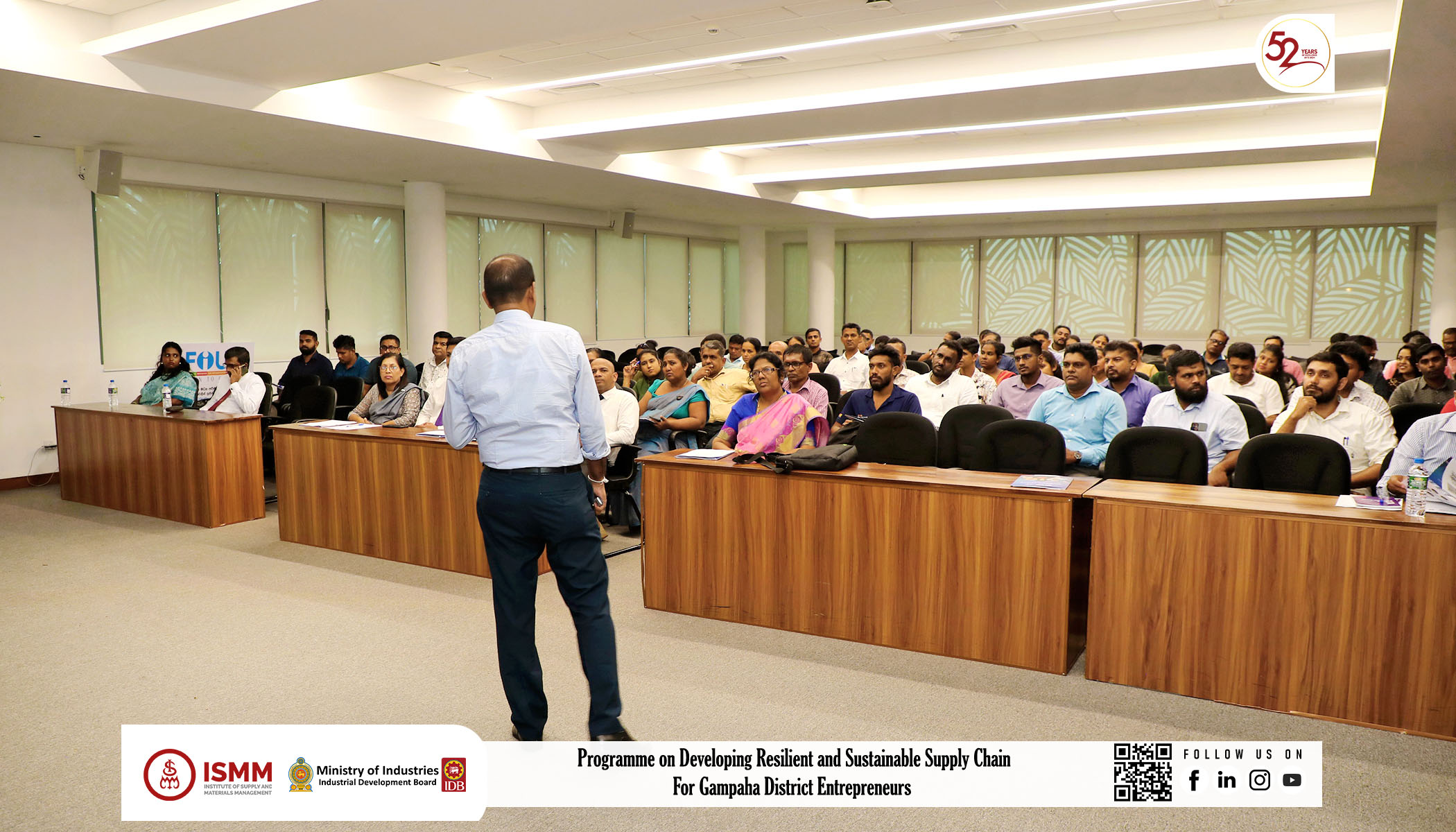 The Institute of Supply and Materials Management (ISMM), in collaboration with the Ministry of Industries, recently conducted a groundbreaking programme aimed at “Developing Resilient and Sustainable Supply Chains” for over 100 Entrepreneurs in the Gampaha District.
