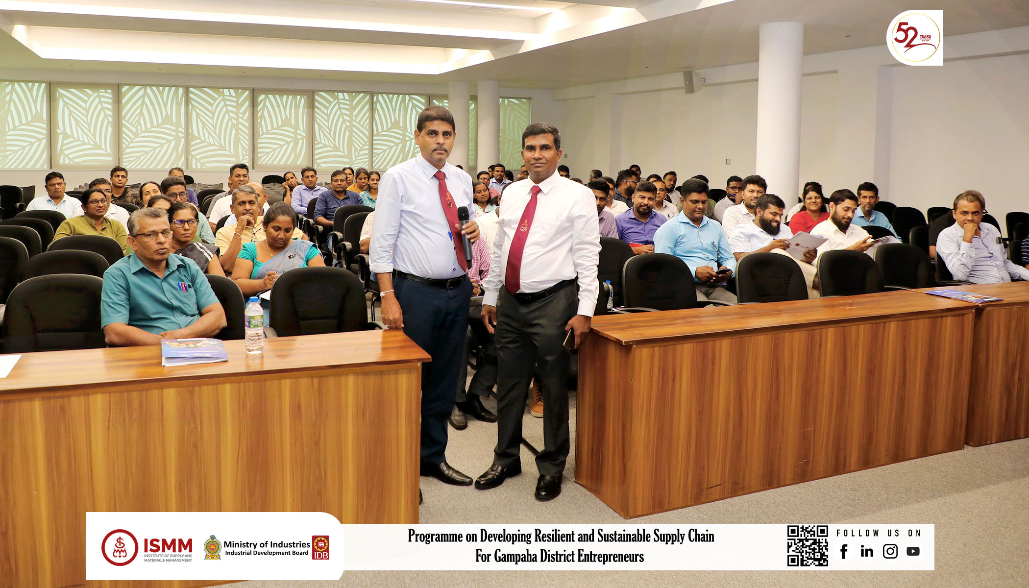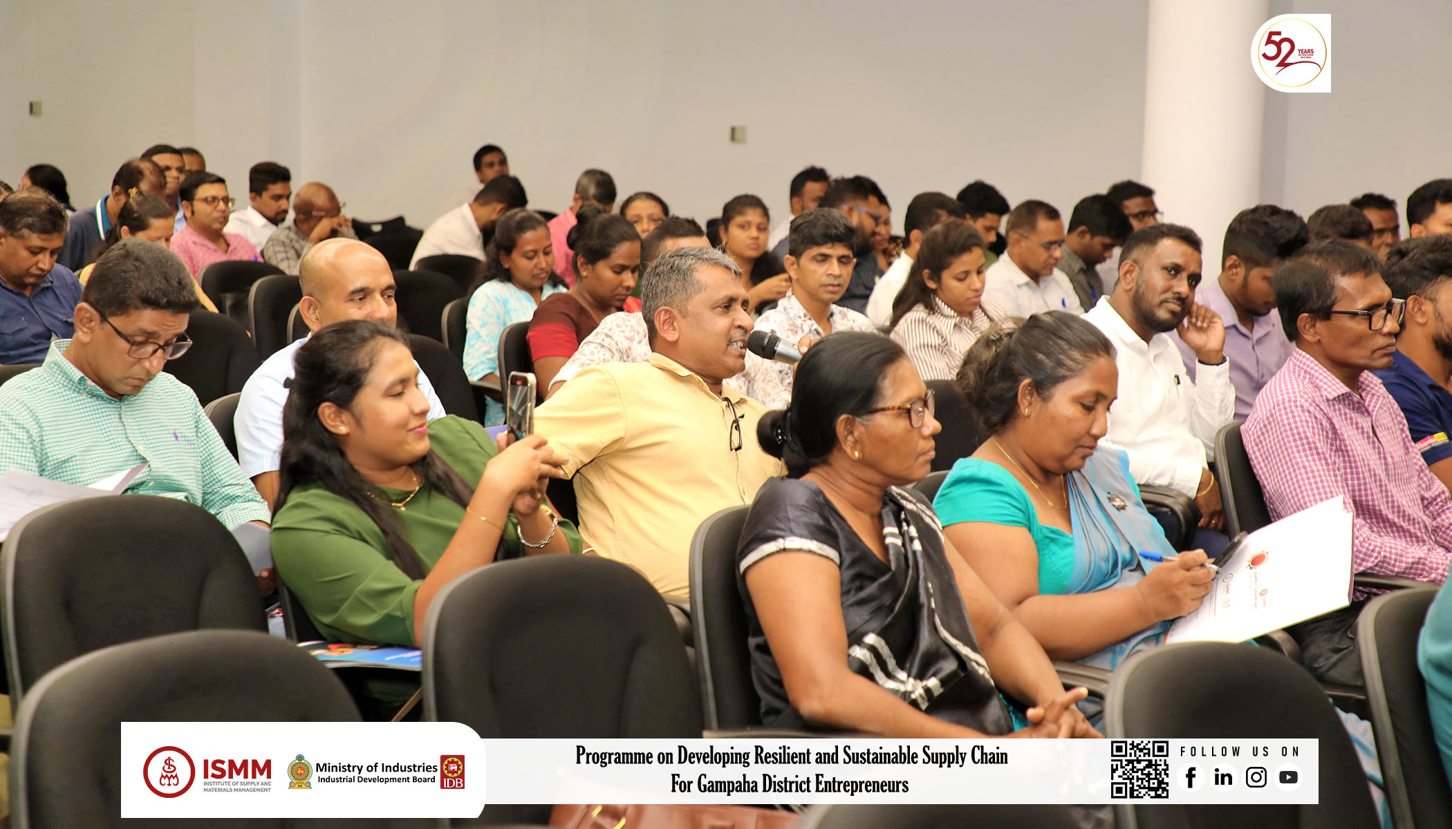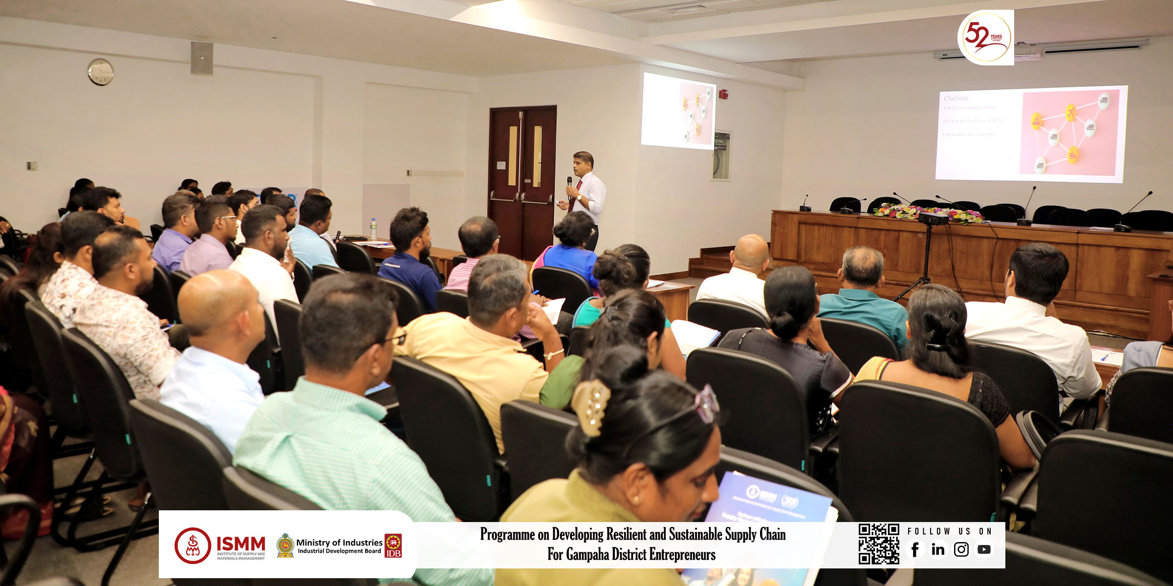 The Institute of Supply and Materials Management (ISMM), in collaboration with the Ministry of Industries, recently conducted a groundbreaking programme aimed at “Developing Resilient and Sustainable Supply Chains” for over 100 Entrepreneurs in the Gampaha District.