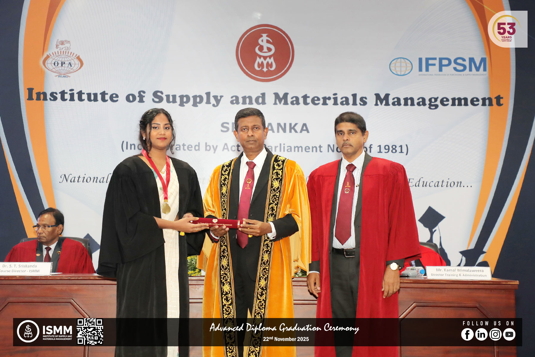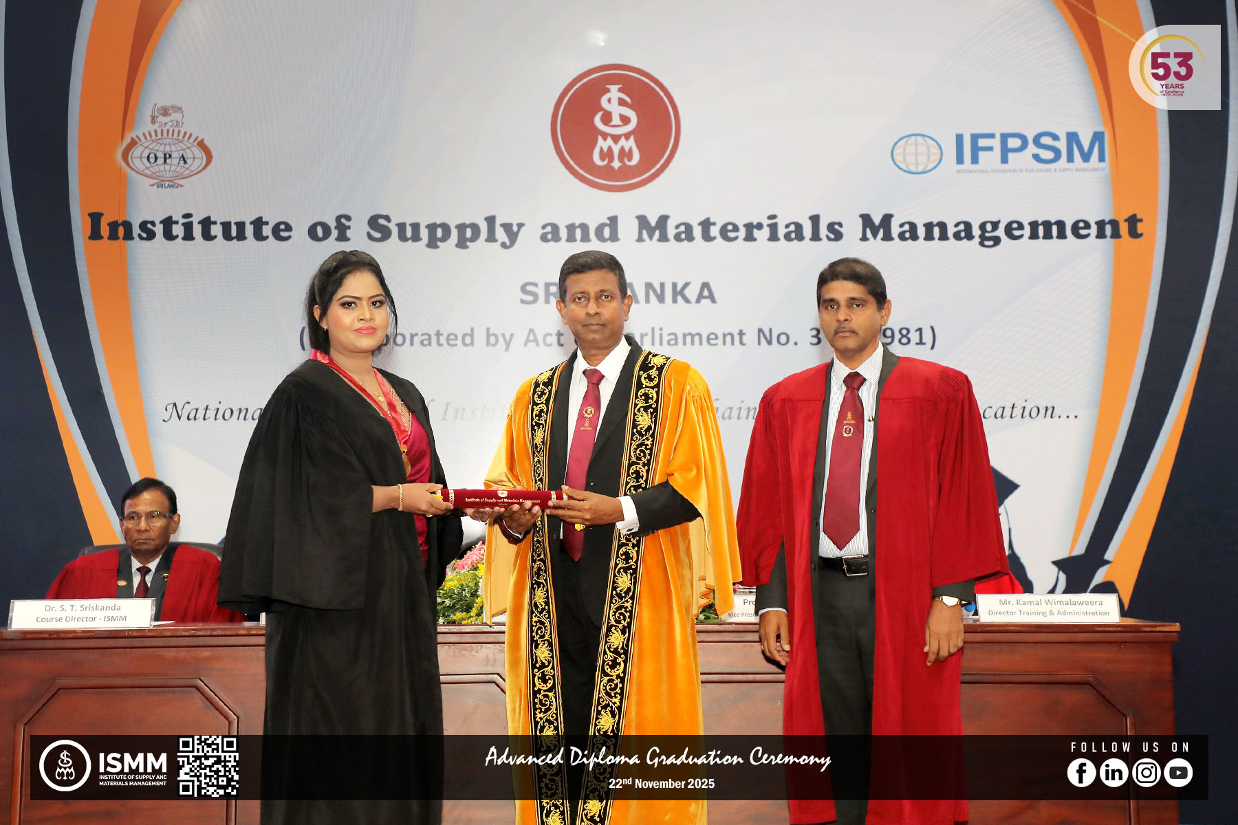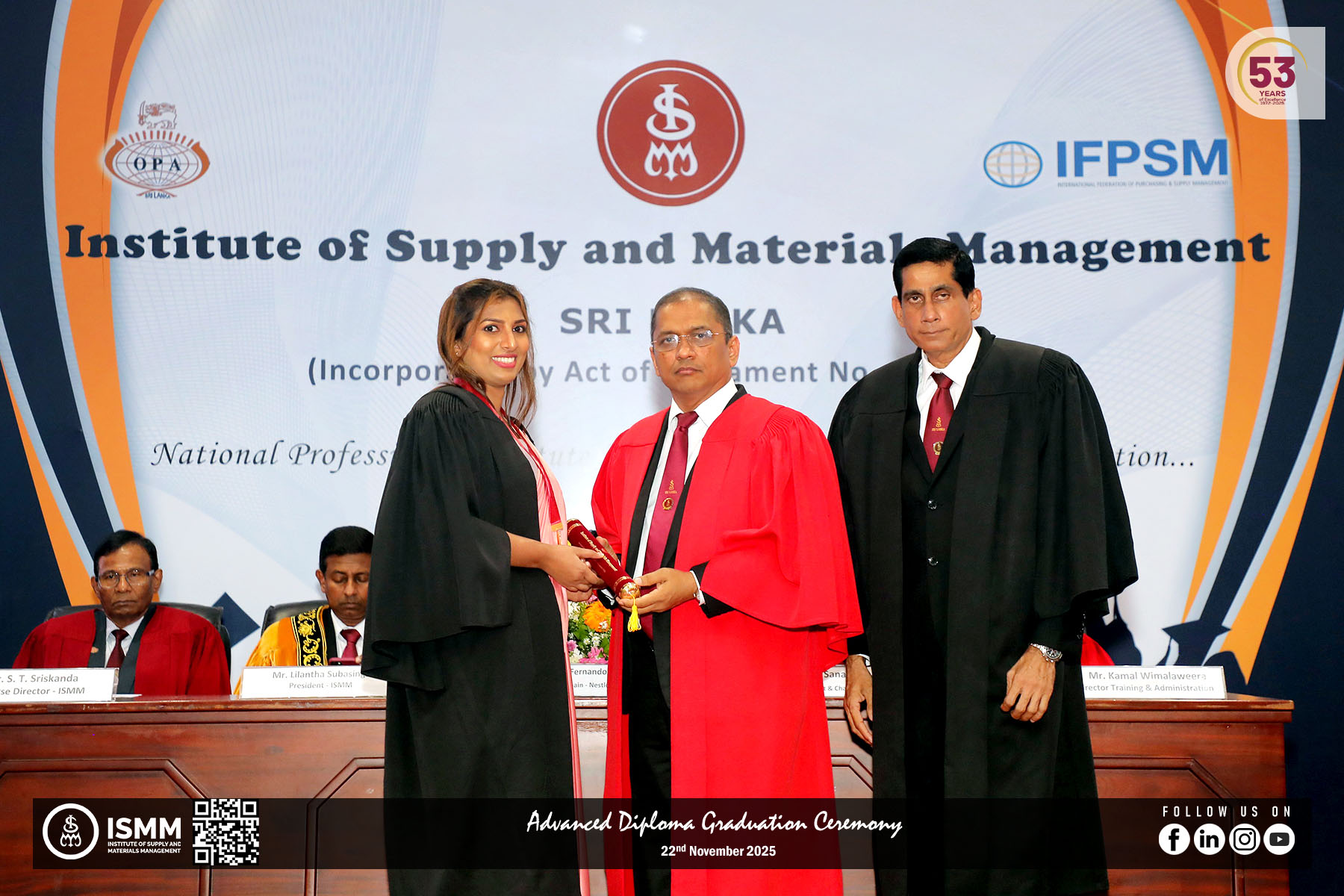 The Institute of Supply and Materials Management (ISMM), Sri Lanka’s pioneer and nationally recognized professional body for Supply Chain and Logistics education, proudly hosted the Advanced Diploma Graduation Ceremony 2025 on 22nd November 2025.