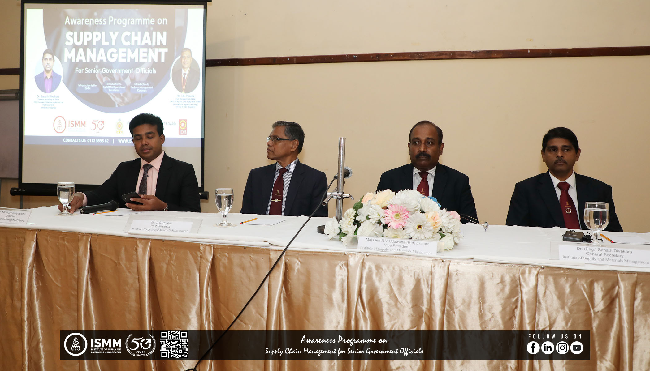 Institute of Supply and Materials Management (ISMM) as the National Professional Institute for Supply Chain Management Education. in collaboration with the Industrial Development Board (IDB) conducted an Awareness Programme on Supply Chain Management to Senior Government Officials on 28th July 2023 at the Grand Oriental Hotel Colombo. The resource persons were Mr. I. G. Perera, Past President of ISMM and Dr. (Eng.) Sanath Divakara, General Secretary of ISMM.