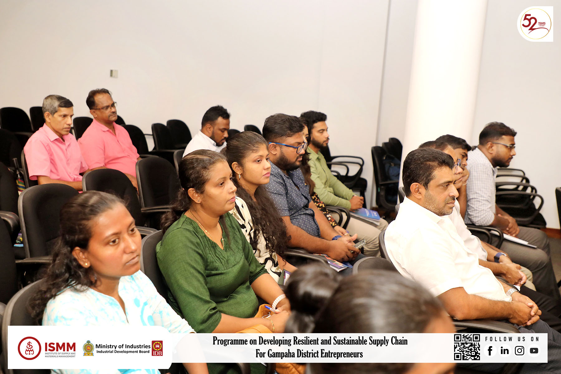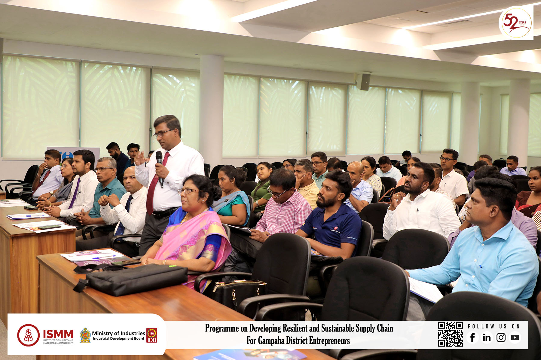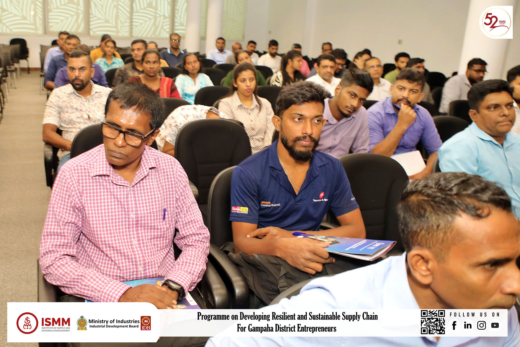 The Institute of Supply and Materials Management (ISMM), in collaboration with the Ministry of Industries, recently conducted a groundbreaking programme aimed at “Developing Resilient and Sustainable Supply Chains” for over 100 Entrepreneurs in the Gampaha District.