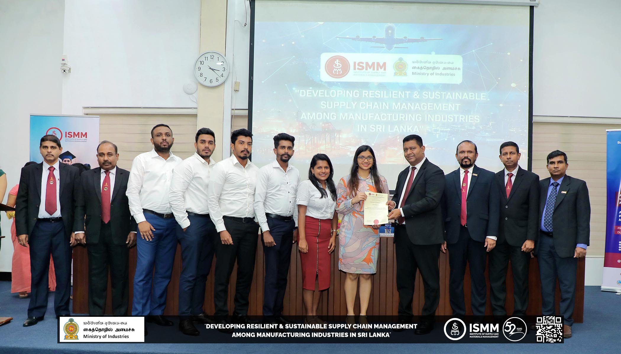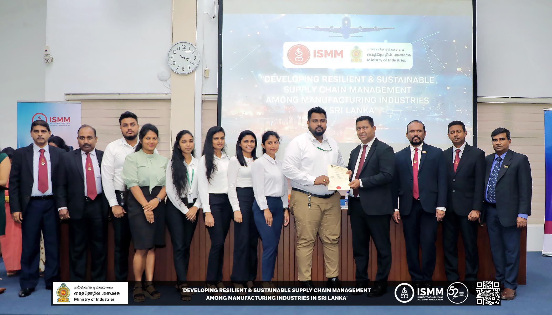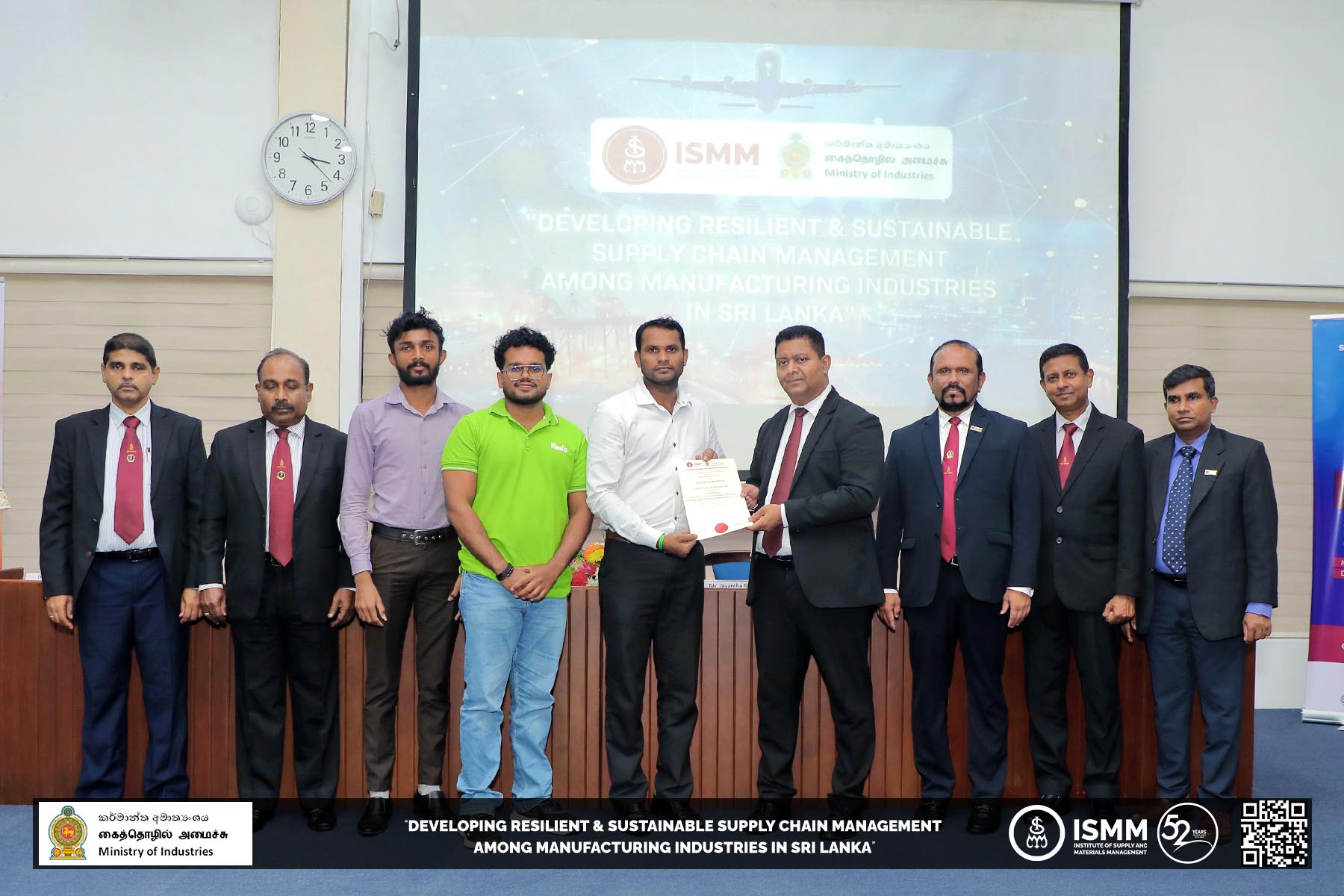 The Institute of Supply and Materials Management (ISMM), in collaboration with the Ministry of Industries, has successfully concluded the "𝐃𝐞𝐯𝐞𝐥𝐨𝐩𝐢𝐧𝐠 𝐑𝐞𝐬𝐢𝐥𝐢𝐞𝐧𝐭 𝐚𝐧𝐝 𝐒𝐮𝐬𝐭𝐚𝐢𝐧𝐚𝐛𝐥𝐞 𝐒𝐮𝐩𝐩𝐥𝐲 𝐂𝐡𝐚𝐢𝐧 𝐌𝐚𝐧𝐚𝐠𝐞𝐦𝐞𝐧𝐭 𝐚𝐦𝐨𝐧𝐠 𝐌𝐚𝐧𝐮𝐟𝐚𝐜𝐭𝐮𝐫𝐢𝐧𝐠 𝐈𝐧𝐝𝐮𝐬𝐭𝐫𝐢𝐞𝐬 𝐢𝐧 𝐒𝐫𝐢 𝐋𝐚𝐧𝐤𝐚" project. This remarkable six-month initiative has laid the foundation for a transformative journey in improving Supply Chain practices within the country's manufacturing sector.