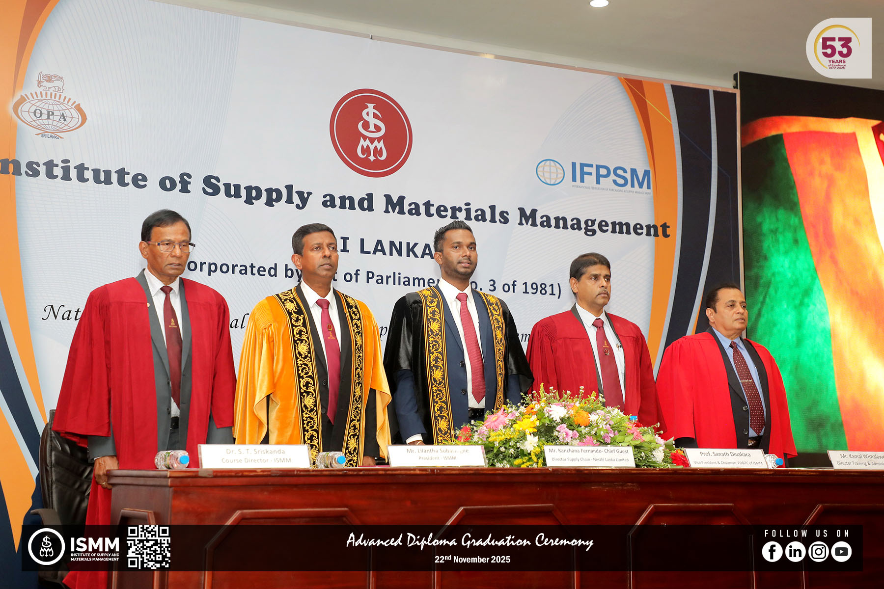 The Institute of Supply and Materials Management (ISMM), Sri Lanka’s pioneer and nationally recognized professional body for Supply Chain and Logistics education, proudly hosted the Advanced Diploma Graduation Ceremony 2025 on 22nd November 2025.